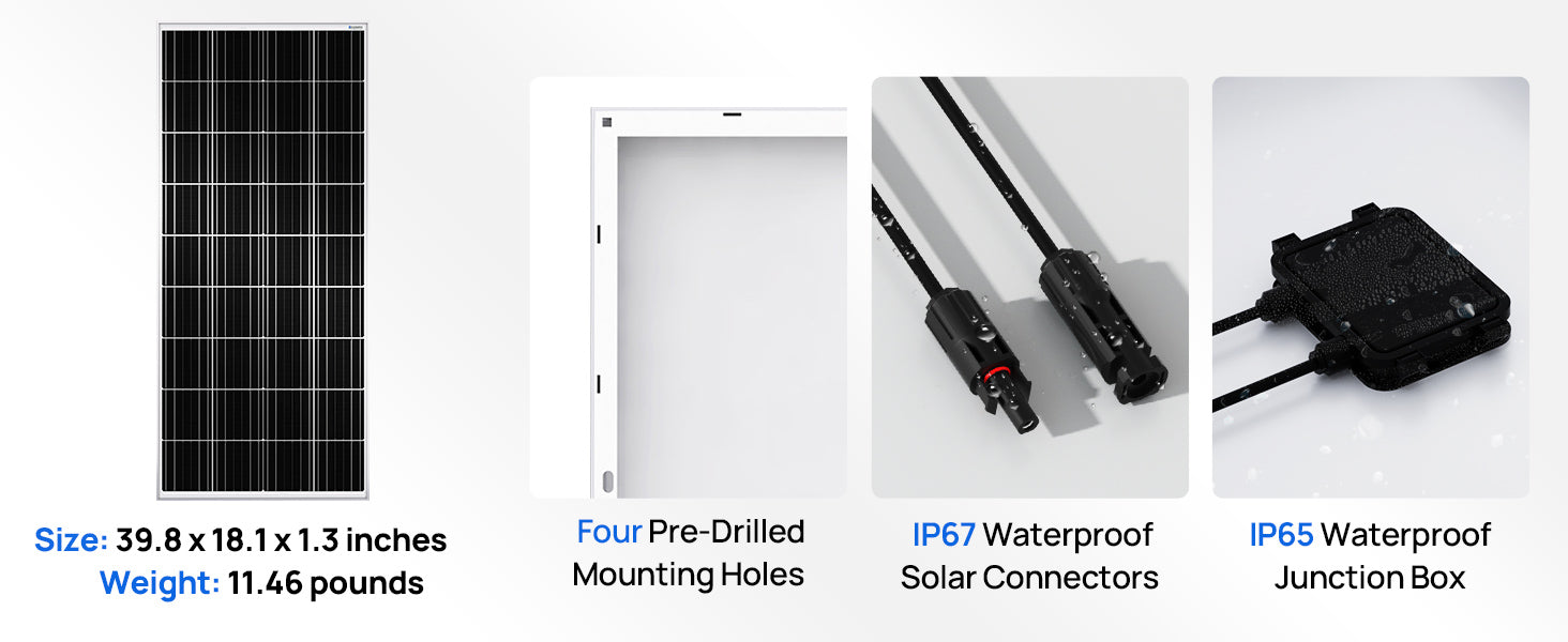 [Easy to Install] Plug & play designed Connector in the cables for quick installation and pre-drilled holes on the back of the panel allow for fast mounting it on the roof or bracket.