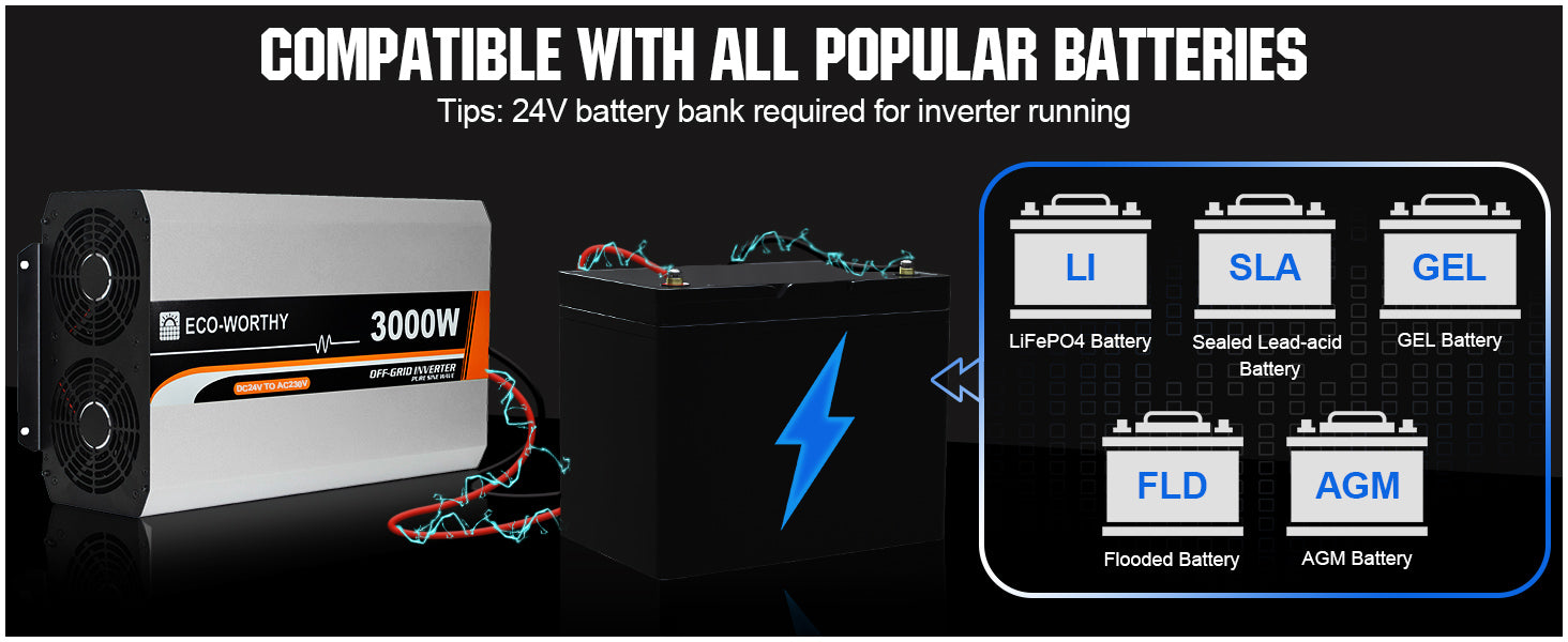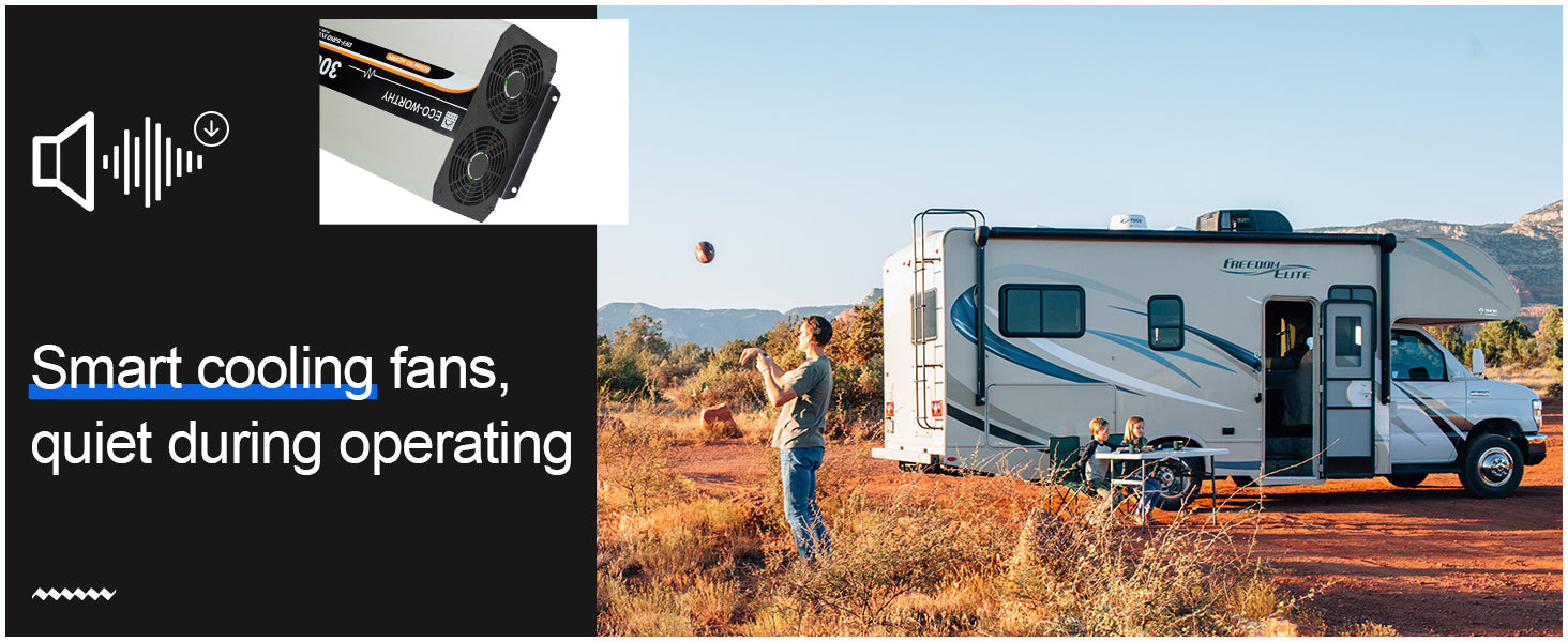 ·LCD Display & Smart Fan: Check battery remains voltage easily, master your electricity duration; Smart cooling fan for saving energy & protect the inverter.