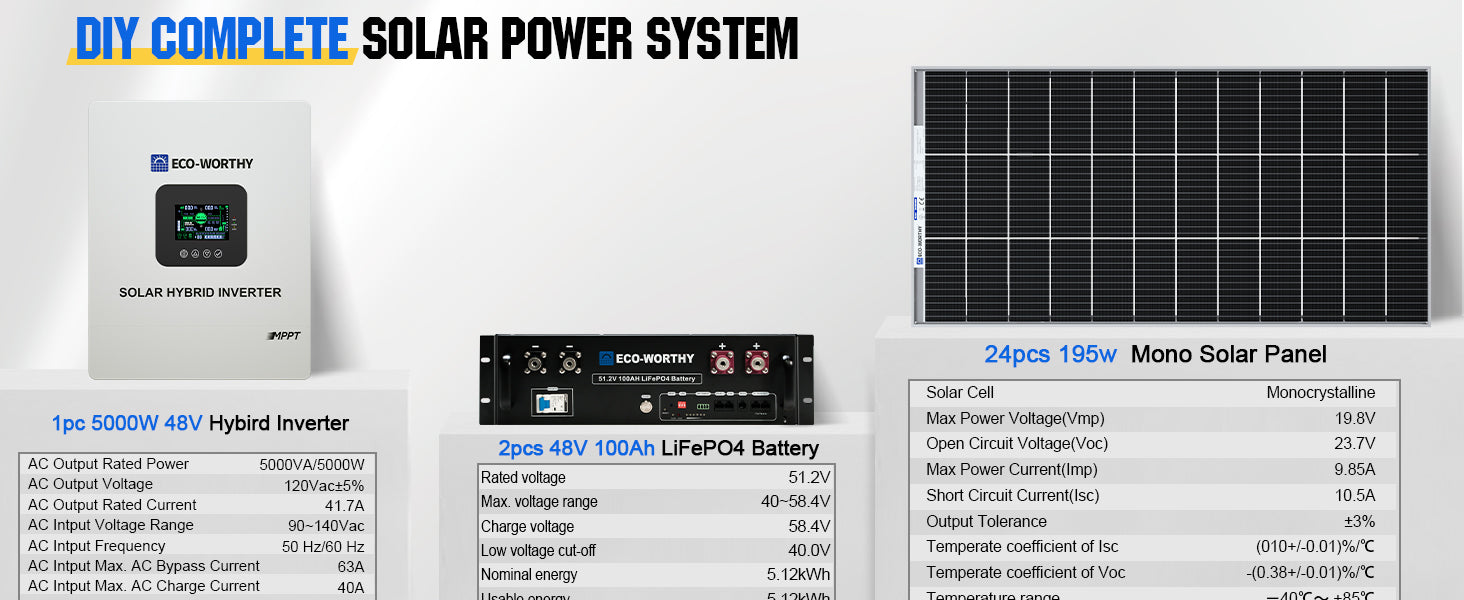 4800W 48V (24x195W) Complete MPPT Off Grid Solar Kit