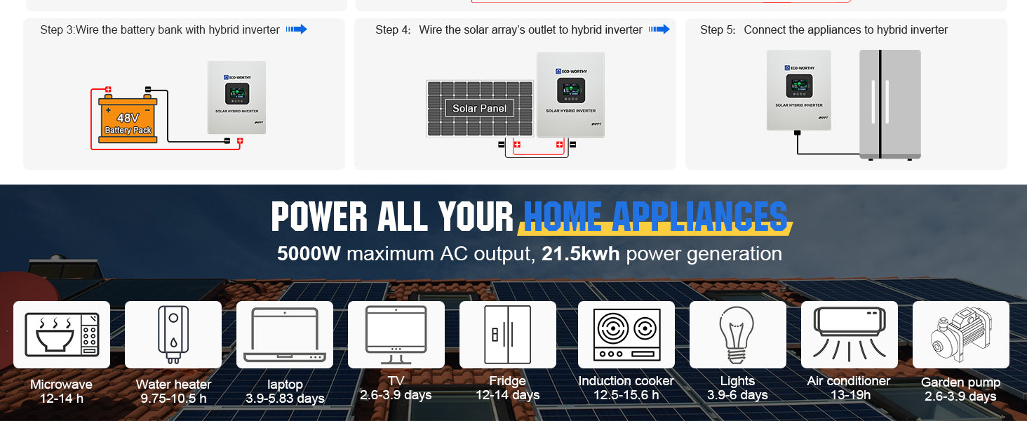 ECO-WORTHY 4800W 48V MPPT Solar Kit can be used for several different purposes, including homes, cabins, etc. Whatever the kit is used for, you can rest assured that you are purchasing a quality system. If you have any questions regarding this product, please contact us info@eco-worthy.com.