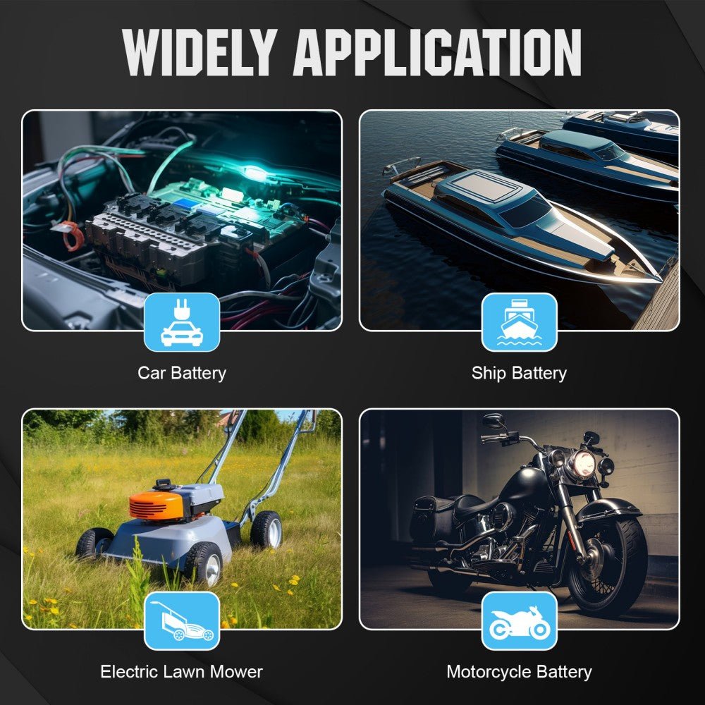 ·Compatible with All Types of Vehicles: Charge and maintain cars, motorcycles, lawn mowers, ATVs, lawn tractors, trucks, SUVs, boats, PWCs, classic cars, and more.