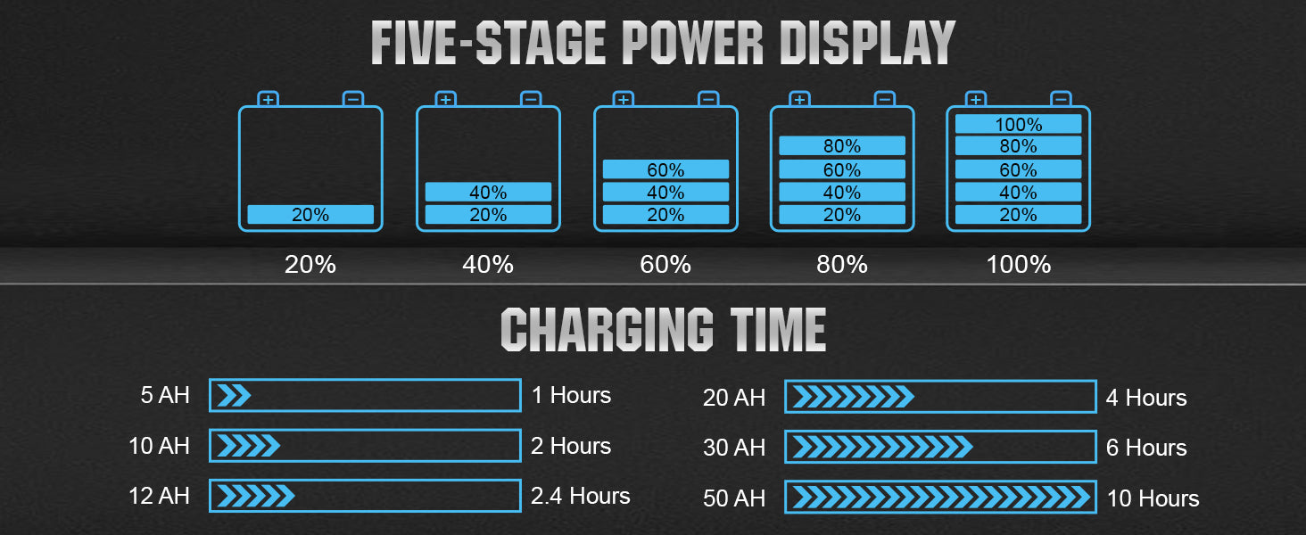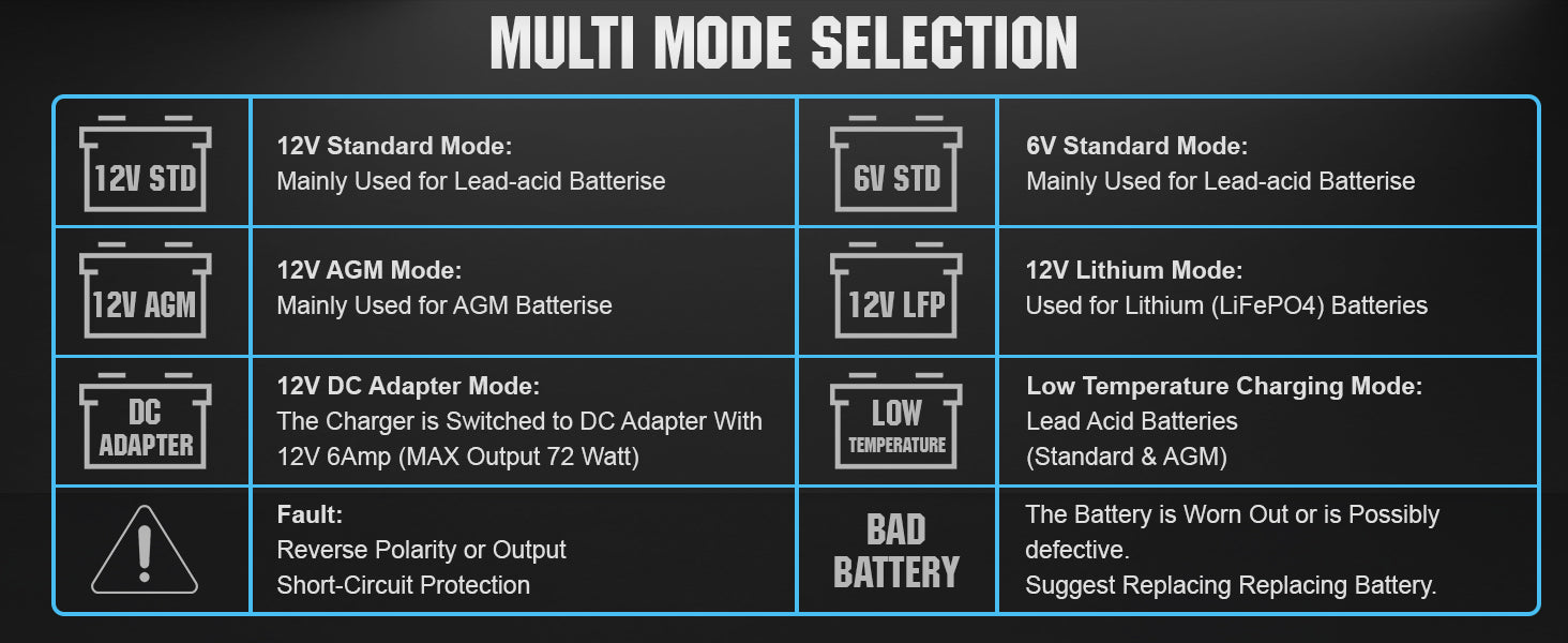 ·Charging and Maintenance: It's not just a trickle charger, it's an advanced battery maintainer. A fully automatic, worry-free battery charger for everyday use-24/7.