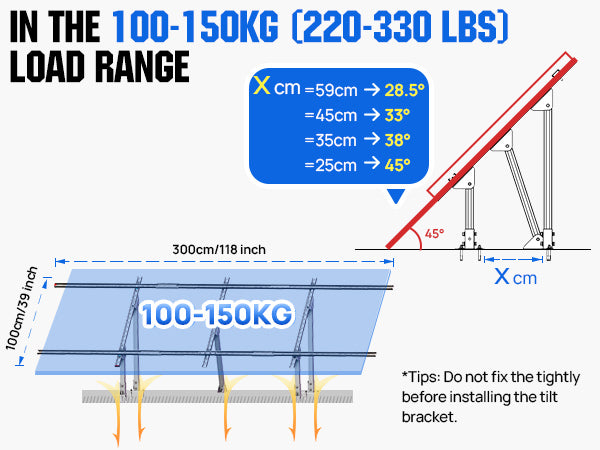 ·Adjustable angle from 30° to 45° Degree, right angle for best solar power. Fixed on ground resistant wind and rain, well protect solar panel and easy to clean.