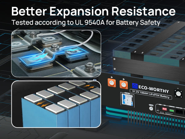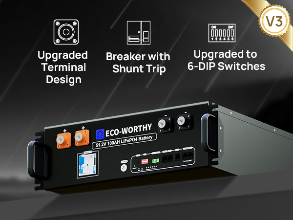 B2B-ECO-WORTHY 48V 100Ah Server Rack Battery | 5.12kWh V3 Lithium Battery | UL1973 | UL9540A | 10-Year Warranty