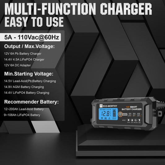 5A & 10A 12V Smart Battery Charger with LCD Display for Lithium (LiFePO4) Batteries
