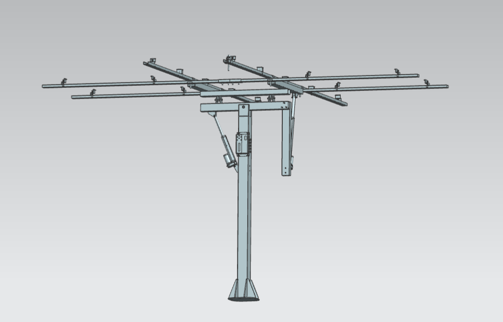 • @Bryce Freeman This information is incorrect!  If you notice, the D bracket only has three bolts and should have four.  It's an older drawing and not the latest one.  I dissassembled my tracker and reassembled following this drawing, and my actuator is now bent and seized up.  I'm wating on the correct information and replacement part from DC House, who is the seller on Amazon.  I believe the D bracket goes on the east side with the actuator pointing to the west as per this Youtube video by Eco-Worthy just a month ago, but I'm still waiting on confirmation.
