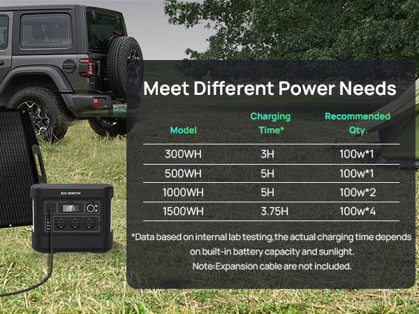 Expandable Power System: The 100W poatable soalr panel supports series/parallel connections to combine multiple panels, flexibly scaling power output for higher energy demands