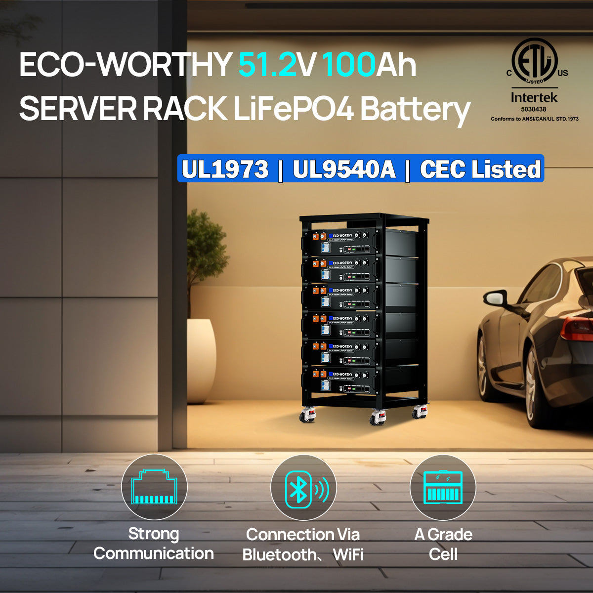 ECO-WORTHY 48V 100Ah Server Rack Battery | 5.12kWh V3 Lithium Battery | UL1973 | UL9540A | CEC