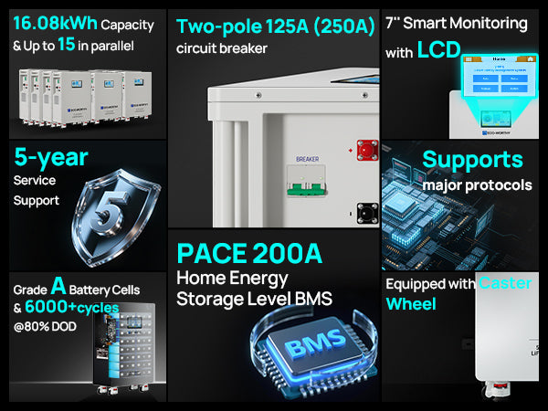 ECO-WORTHY Home Backup Power 16.08KWh 51.2V 314Ah Battery+10kW 48V Off Grid Inverter