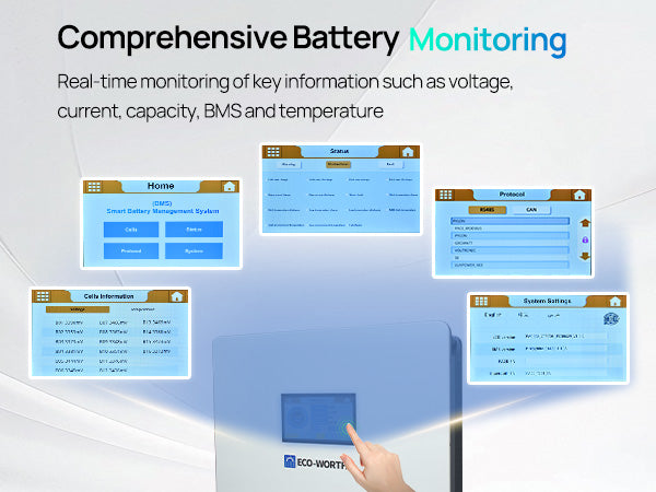 【Safety Protection & Mobility】 Equipped with advanced BMS featuring overcharge, overdischarge, overcurrent, short circuit, and temperature protection. Built-in buzzer alerts for real-time fault detection. Each nylon wheel supports 100kg, enabling easy movement and stable installation (more flexible than wall-mounted designs).