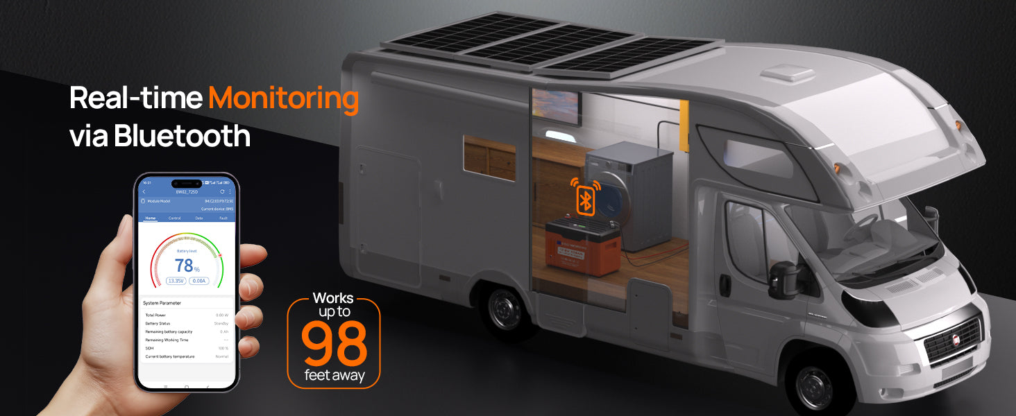 Smart APP Control: The 12V 100Ah lithium trolling motor battery with built-in Bluetooth lets you monitor battery voltage, current, capacity, SOC, runtime, cell voltages/consistency, etc., within 98 feet via the smart ECO-WORTHY APP