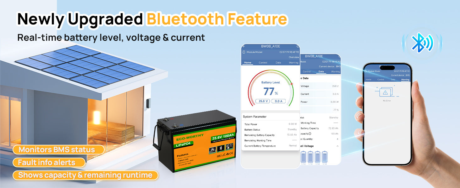[Wide Applications] Perfectly suited for RVs, campers, trolling motors, marine systems, golf carts, solar setups, and emergency backup power. With upgraded Bluetooth monitoring and reliable grade a cells, this battery delivers both safety and convenience for diverse energy applications
