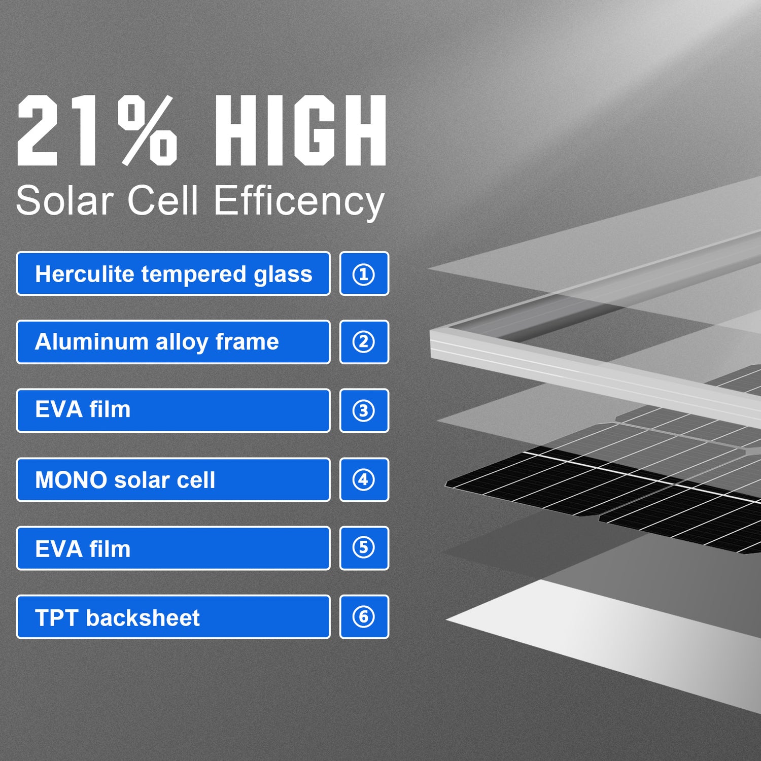 Eco-Worthy monocrystalline solar panel is compact with enhanced aluminum frame and tempered glass. IP65 class water proof, strong enough to withstand strong winds (2400Pa) and snow loads (5400Pa), worry-free for outdoor uses.